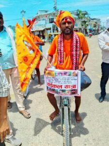 बर्दिया, गुलरिया । गुलरिया नगरपालिका वडा नं. ३, तेजीपुर गाउँबाट तीन जना भक्तजन धार्मिक साइकल यात्रामा पशुपतिनाथ मन्दिर, काठमाडौंतर्फ प्रस्थान गरेका छन्। जितेन्द्र कुमार यादव, दायाराम रैदास र मलती प्रसाद गोडिया श्रद्धा र समर्पणका साथ कवर लिएर यो पवित्र यात्रामा निस्किएका हुन्।