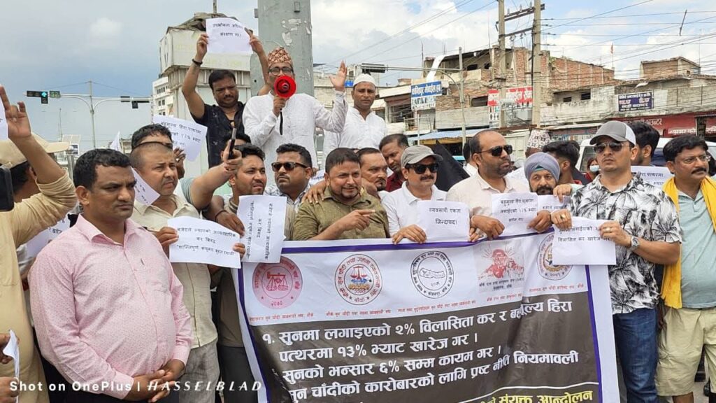 नेपालगन्जका सुनचाँदी व्यापारी दोकान बन्द गरेर फेरि सडकमा आएका छन ।
