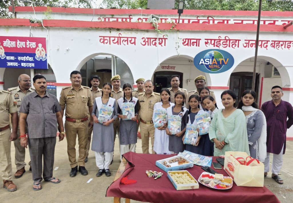नेपालगन्ज / रूपईडीहा, बहराइच, ९ अगस्त २०२५: भारत-नेपाल सीमावर्ती क्षेत्रमा अवस्थित आदर्श थाना रूपईडीहामा रक्षाबन्धनको महापर्व धुमधामका साथ मनाइएको छ। यस अवसरमा सरस्वती विद्यालयका छात्राहरूले थानामा उपस्थित प्रहरी अधिकारी र कर्मचारीहरूलाई रक्षा सूत्र (राखी) बाँधेर र टीका लगाएर यो पर्वलाई विशेष बनाए।