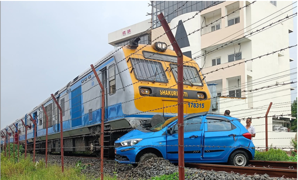 तीनजना सवार कारलाई जनकपुरमा रेलको ठक्कर