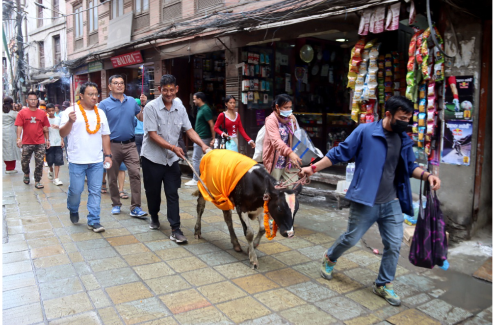 एक वर्षभित्र दिवङ्गत भएका आफन्तको सम्झनामा आजका दिन गाई वा मानिसलाई गाईका रूपमा सिँगारी आ–आफ्ना क्षेत्रमा परिक्रमा गराउने र उनीहरूलाई श्रद्धालुद्वारा दूध, फलफूल, रोटी, चिउरा, दहीका साथै अन्न र द्रव्य दान गरिन्छ। यसरी नगर परिक्रमा गर्नाले वर्षभरि मृत्यु भएका व्यक्तिहरू गाईको पुच्छर समाई वैतरणी पार हुन्छन् भन्ने धार्मिक विश्वास छ।