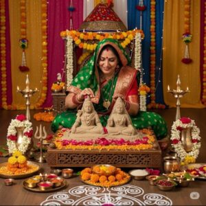 बालुवा वा शुद्ध माटोमा गंगाजल मिसाएर शिवलिंग, गणेश, रिद्धि–सिद्धि, माता पार्वती र उनकी सखीको प्रतिमा बनाएर पूजा गरिन्छ।