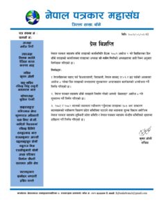 नेपालगन्ज, असोज ४, २०८२ – नेपाल पत्रकार महासंघ बाँके शाखाको कार्यसमिति बैठकले चाडपर्वको अवसरमा शुभकामना आदानप्रदान कार्यक्रम, शाखाको वेबसाइट शुभारम्भ तथा सदस्यता नवीकरणसम्बन्धी निर्णय गरेको छ। यो बैठक बुधबार बाँके शाखाको कार्यालयमा शाखाका अध्यक्ष नवीन गिरीको अध्यक्षतामा बसेको थियो।