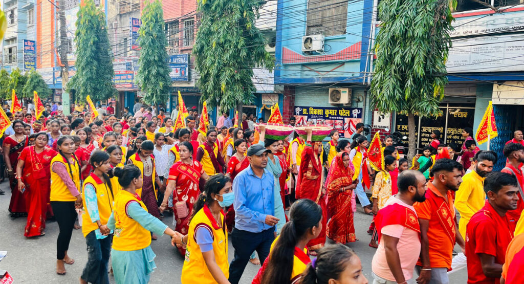 नेपालमै पहिलो पटक वीरगन्जमा निकालियो नवदुर्गा भवानीको १५१ मिटर लामो ‘चुनरी यात्रा’