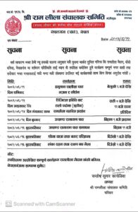 यसैगरी समितिले कार्यक्रम तालिका: यसप्रकारको जारी गरेको छ।
