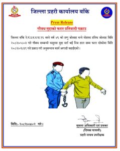 नेपालगञ्ज, २ कात्तिक २०८२ । जिल्ला प्रहरी कार्यालय बाँकेले गौवध सम्बन्धी मुद्दामा फरार रहेका एक प्रतिवादीलाई पक्राउ गरेको छ । पक्राउ पर्नेमा बाँकेको नेपालगञ्ज उपमहानगरपालिका–१६ निवासी ४६ वर्षीय मोहमद हनिफ जोलाह, उर्फ हग्गु जोलाह रहेका छन् ।