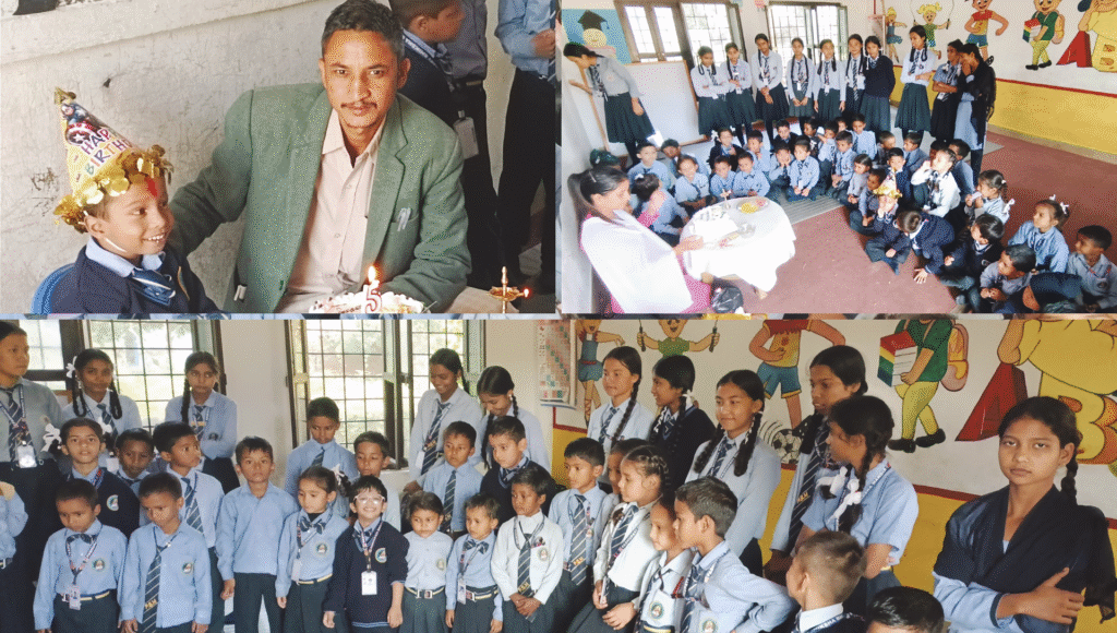यसै क्रममा आज नर्सरीमा अध्यनरत विद्यार्थी नरसिंह राज साहूको जन्मदिन केक काटेर, गीत गाएर र उपहार दिएर हर्षोल्लासका साथ मनायो ।