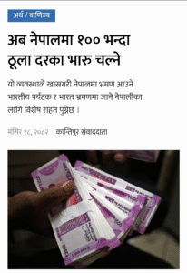 अब नेपालमा १०० भन्दा ठूला दरका भारु नोट चल्ने