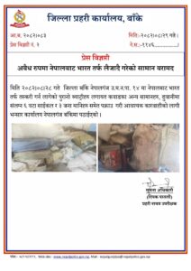नेपालगञ्ज, मंसिर २९ (२०८२) — बाँके जिल्ला प्रहरीले भारतसँगको सीमा क्षेत्रमा अवैध तस्करी रोक्ने क्रममा विभिन्न सामानहरू बरामद गरेको छ। जिल्ला प्रहरी कार्यालय बाँकेका सूचना अधिकारी तथा प्रहरी नायव उपरीक्षक दीपक पातलीद्वारा जारी प्रेस विज्ञप्तिअनुसार तीन छुट्टाछुट्टै घटनामा तस्करीका सामान बरामद गरिएका छन्।
