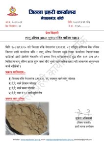 जिल्ला प्रहरी कार्यालय बाँकेका सूचना अधिकारी प्रहरी नायब उपरीक्षक दीपक पातलीले जारी गरेको विज्ञप्तिमा पक्राउ लागु औषध नियन्त्रण अभियानअन्तर्गत गरिएको उल्लेख छ। थप अनुसन्धान भइरहेको प्रहरीले जनाएको छ।