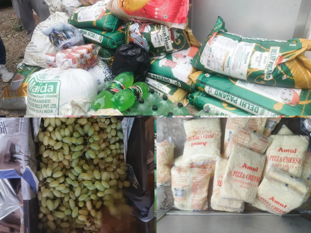 बरामद गरिएका मुख्य सामानहरूमा: खाद्यान्न,फलफूल (अंगुर/ग्रेप्स) दुग्धजन्य उत्पादन (अमुल ब्रान्डका पिज्जा चिज, मख्खन लगायत) माउंटेन ड्यू जस्ता पेय पदार्थ वा अन्य विभिन्न खाद्य सामग्रीहरू रहेका छन्।