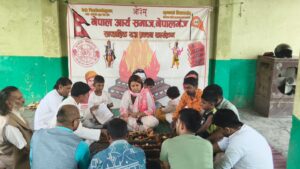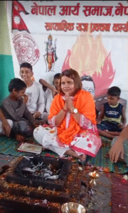 नेपालगञ्ज, ५ गते – नेपाल आर्य समाज नेपालगञ्जको साप्ताहिक यज्ञ प्रवचन तथा हवन कार्यक्रममा लुम्बिनी प्रदेशसभा सदस्य माननीय अम्बिका काफ्लेलाई मुख्य यजमानको रूपमा सम्मान गरिएको छ ।
