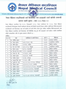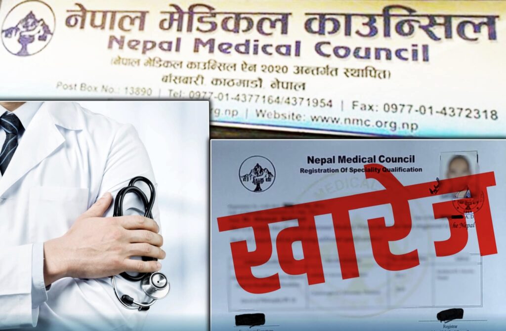 काउन्सिलले शुक्रबार एक सूचना जारी गर्दै नेपाल मेडिकल काउन्सिल ऐन २०२०, नियमावली २४, नेपाल नागरिकता ऐन २०६३, नेपाल मेडिकल काउन्सिलको निर्णयअनुसार उनीहरुको नाम खारेज गरिएको हो । यसरी नाम खारेज हुनेहरुमा हङकङ नागरिक डा. शर्मिला गुरुङ, अस्ट्रेलियन नागरिक डा. रोशन भुषाल, ब्रिटिस नागरिक डा. मोती गुरुङ, अस्ट्रेलियन नागरिक डा. देवराज रेग्मी, ब्रिटिस नागरिक डा. मेरिना गुरुङ रहेका छन् ।