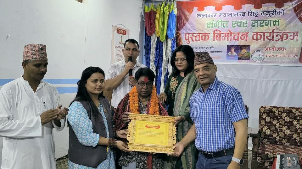 नेपालगन्ज/ बरिस्ठ कलाकार श्यामानन्द सिंह ठकुरीको सङ्गीत स्वर सरगम आधारभुत ज्ञान पुस्तक बिमोचन गरिएको छ ।